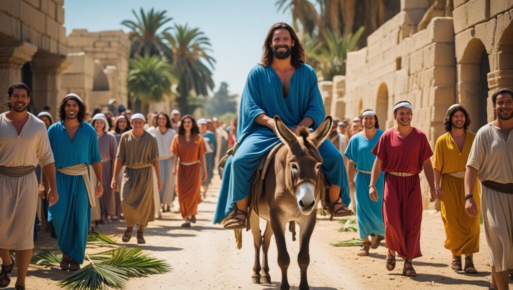 Alégrate mucho, hija de Sion; da voces de júbilo, hija de Jerusalén; he aquí tu rey vendrá a ti, justo y salvador, humilde, y cabalgando sobre un asno, sobre un pollino hijo de asna.
