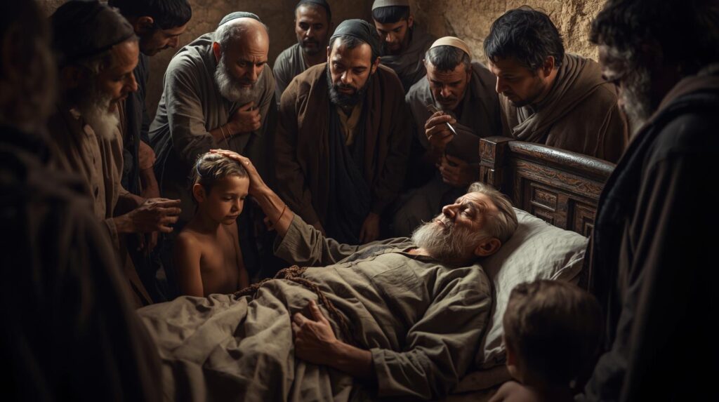 Por la fe Jacob, al morir, bendijo a cada uno de los hijos de José, y adoró apoyado sobre el extremo de su bordón.
