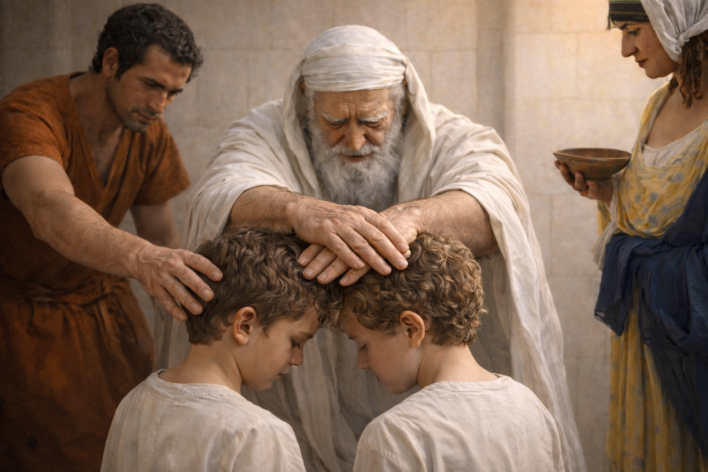 Cuando Jacob bendijo a sus nietos Efraín y Manasés, asiéndolos parte de las 12 tribus de Israel, decidió bendecir primero al más joven, a “Efraín”, a pesar de los reclamos de José, que insistía que Jacob se estaba confundiendo, ya que era muy anciano y falta de vista, la costumbre o tradición era, que se le diera la primera bendición al primogénito, que en este caso sería a Manases, pero Jacob opto por no hacerlo y cruzo sus manos bendiciendo a Efraín primero, Jacob sabia que Efraín sería más grande que Manasés (Génesis 48:5-21).