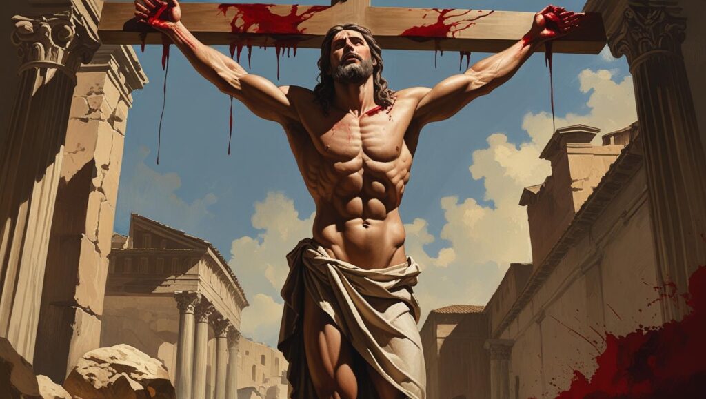 El tormento venía de ser clavado, también de la suspensión de los brazos abiertos, esta posición causa problemas de respiración debido a la posición que toma el diafragma, los pulmones se llenan de líquido haciendo al reo que muera poco a poco de asfixia. También el cuerpo era mantenido allí para que fuera devorado por los buitres y otras aves. La meta de la crucifixión romana no era solamente matar al criminal, sino también mutilar y deshonrar el cuerpo del condenado.