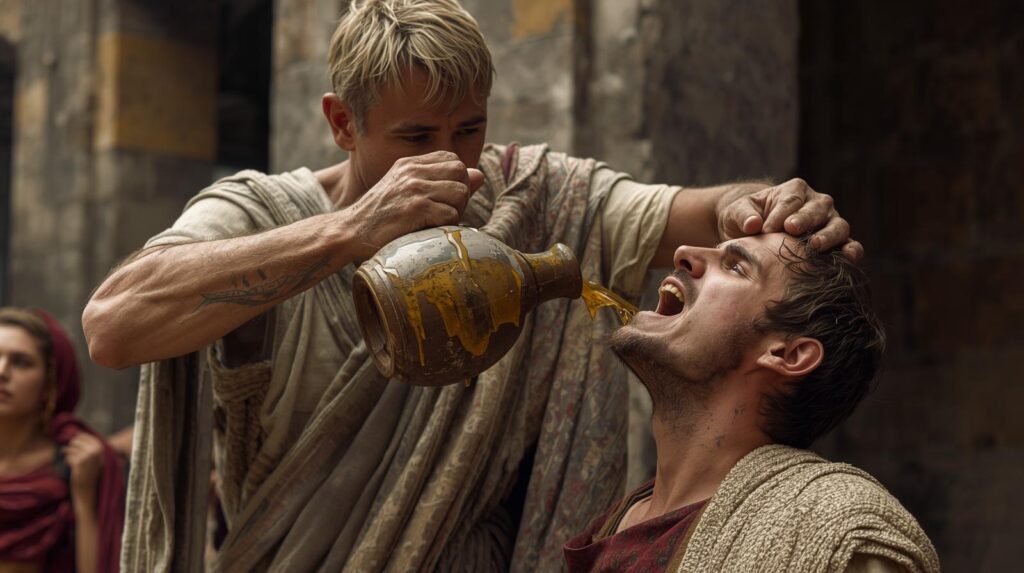 Había muchos métodos de castigo, como derramar oro fundido en la boca, como le sucedió al comandante romano, Craso.