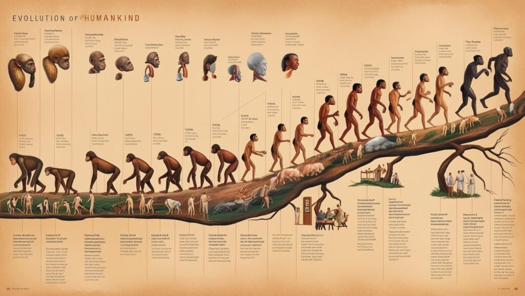Esta es la tabla según los científicos que enseña la evolución del hombre. Dios no creó un mono que se volvió hombre. Dios creó al hombre a Su imagen y semejanza, también creó otras criaturas, como el mono que habitaría en la tierra.
