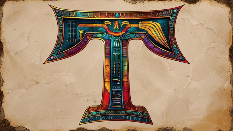 La “T”, primera letra del nombre Tamuz, el cual era un dios sumerio llamado Dumuzi, asociado con la agricultura y la vida pastoral, y se le vinculaba con las ovejas, los corderos y la leche de oveja, además de la fertilidad de la tierra.  Este símbolo fue usado como símbolo religioso en la antigua Babilonia.