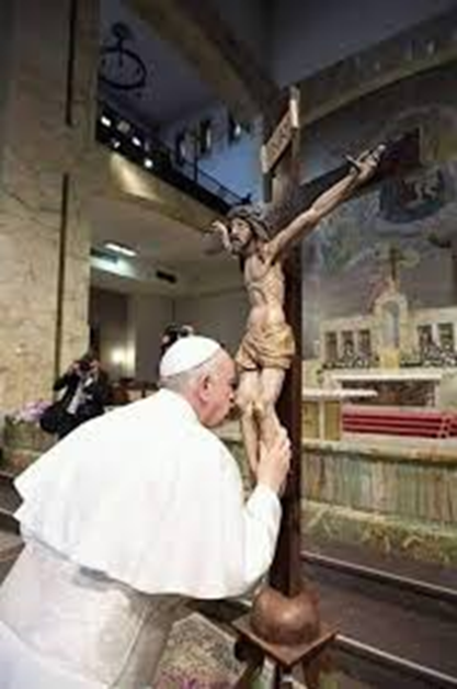 Aquí podemos observar cómo la cruz es venerada por los clérigos de la iglesia y asimismo por creyentes devotos de la religión universal. Todo es idolatría. ¿Cuál es la diferencia? No hay ninguna.