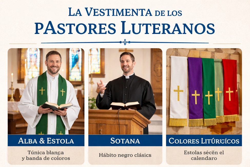 En la Iglesia Luterana, los pastores usan vestimenta especial durante la liturgia (el culto) para reflejar orden, reverencia y el servicio a Dios.