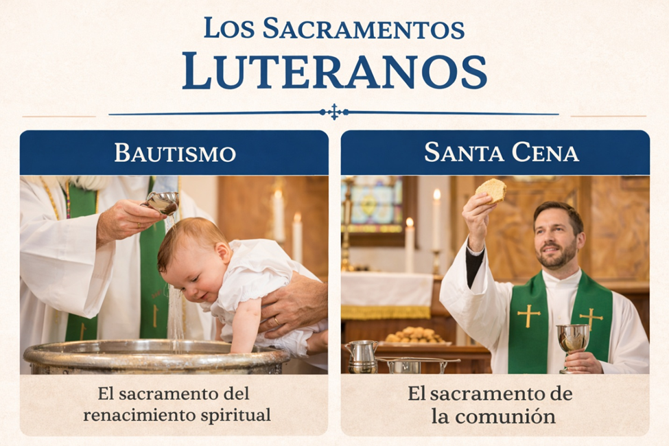 👉 En cuanto a los sacramentos, los luteranos reconocen principalmente dos: el Bautismo y la Santa Cena (Eucaristía), creencia pasada del catolicismo. Creen que en la Cena del Señor, el cuerpo y la sangre de Cristo están verdaderamente presentes, que el pan es literalmente el cuerpo de Cristo y el vino es literalmente la sangre de Cristo (eucaristía), una doctrina distinta a otras denominaciones. Estos sacramentos son vistos como medios de gracia, es decir, maneras en que Dios fortalece la fe del creyente.