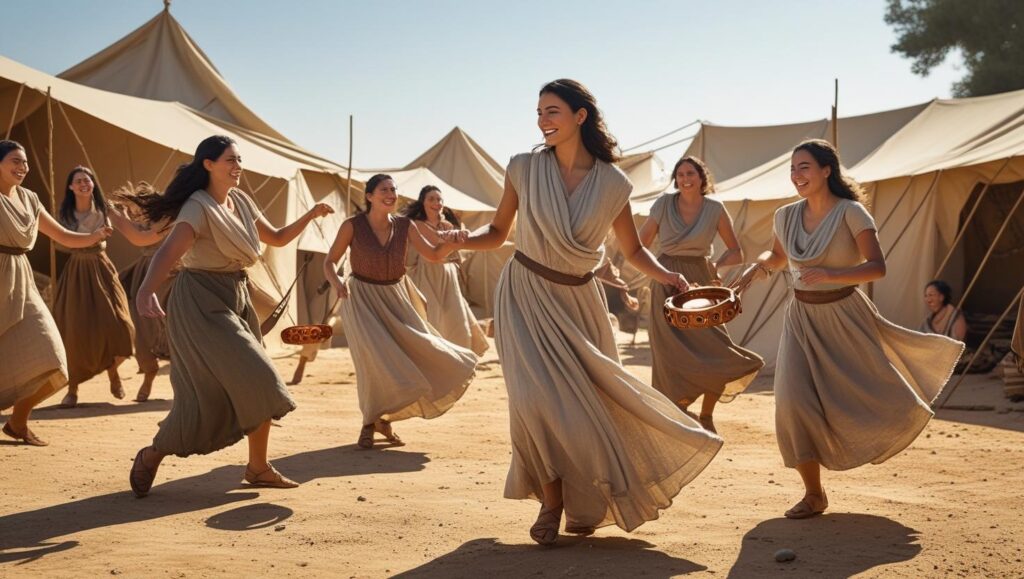 Y María la profetisa, hermana de Aarón, tomó un pandero en su mano y todas las mujeres salieron en pos de ella con panderos y danzas.