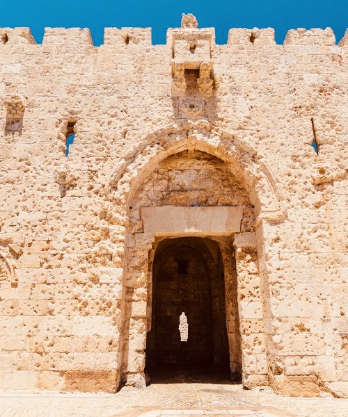 Situada en la muralla sur, la llaman “Puerta de Sión” porque el Monte Sión se encuentra al frente.
