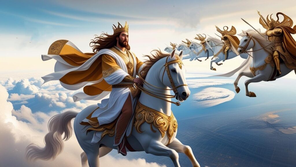 Sin embargo, en su segunda venida ya no aparecerá en la humildad de su primera manifestación, cuando entró en Jerusalén montado en un asno, sino que será revelado en gloria y autoridad: la Escritura lo presenta como el León de la tribu de Judá (Libro del Apocalipsis 5:5), símbolo de realeza, poder y victoria. Entonces vendrá no sobre un asno, signo de mansedumbre y paz, sino sobre un caballo blanco (Apocalipsis 19:11), imagen de fuerza, conquista y juicio justo.