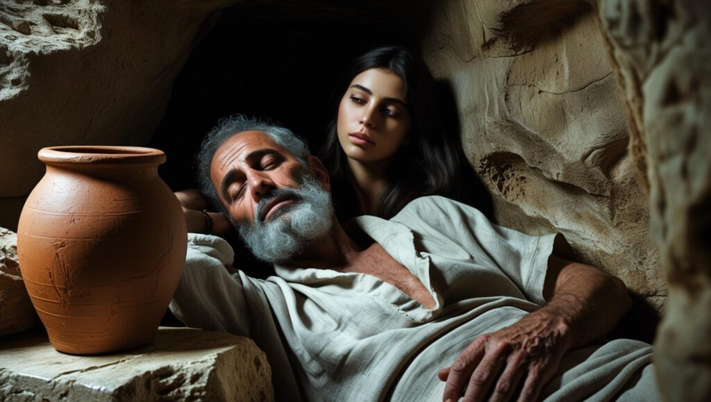 Pero Lot subió de Zoar y moró en el monte, y sus dos hijas con él; porque tuvo miedo de quedarse en Zoar, y habitó en una cueva él y sus dos hijas. Entonces la mayor dijo a la menor: Nuestro padre es viejo y no queda varón en la tierra, que entre a nosotras conforme a la costumbre de toda la tierra. Ven, demos a beber vino a nuestro padre y durmamos con él, y conservaremos de nuestro padre descendencia. Y dieron a beber vino a su padre aquella noche, y entró la mayor, y durmió con su padre; mas él no sintió cuándo se acostó ella, ni cuándo se levantó. El día siguiente, dijo la mayor a la menor: He aquí, yo dormí la noche pasada con mi padre; démosle a beber vino también esta noche, y entra y duerme con él, para que conservemos de nuestro padre descendencia. Y dieron a beber vino a su padre también aquella noche, y se levantó la menor, y durmió con él; pero él no echó aver cuándo se acostó ella, ni cuándo se levantó. Y las dos hijas de Lot concibieron de su padre. Y dio a luz a la mayor un hijo, y llamó su nombre Moab, el cual es padre de los moabitas hasta hoy. La menor también dio a luz un hijo y llamó a su nombre Ben-ammi, el cual es padre de los amonitas hasta hoy.