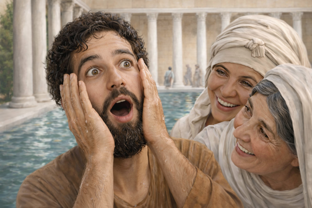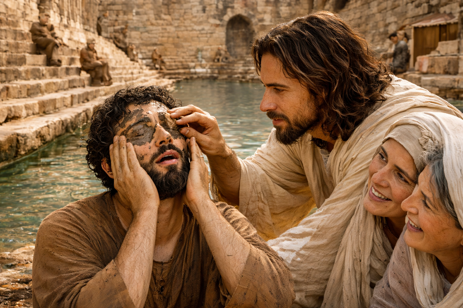 La tierra y su saliva obraron. Haciendo lodo y untándolo en sus ojos, después le dijo: Ve y lávate en el estanque del “Enviado” (Estanque de Siloe). Allí se lavó y se limpió y recibió la vista.