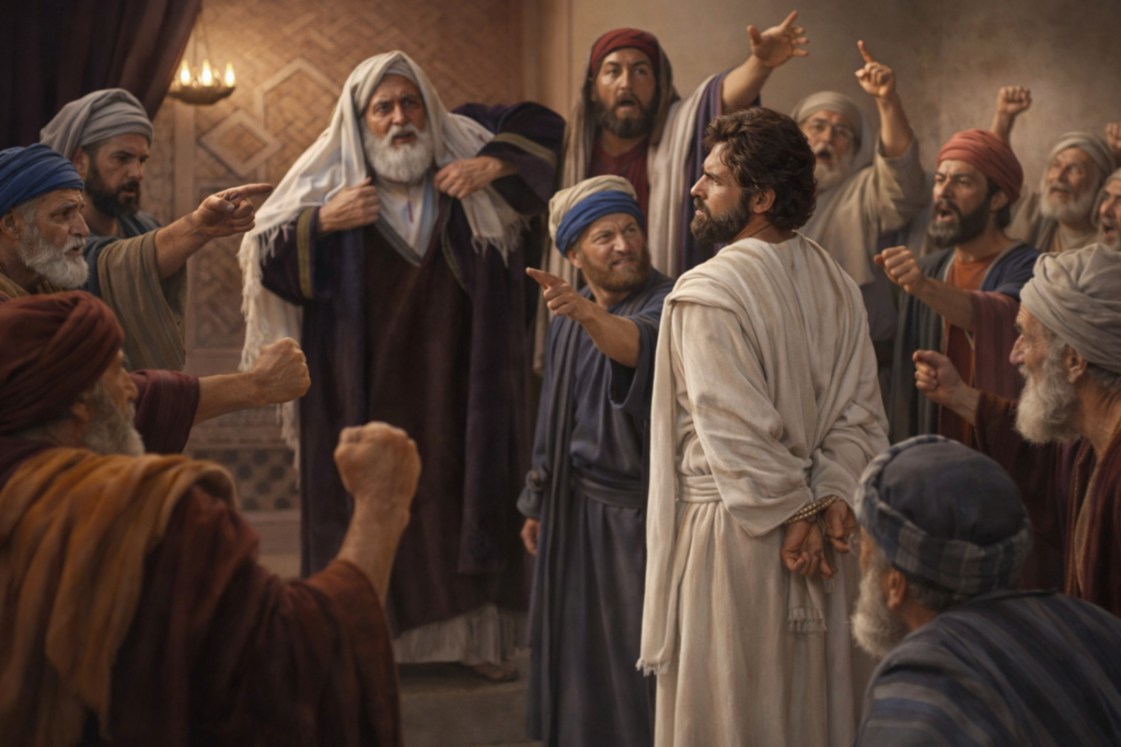 Llevaron a Jesús de casa de Caifás al pretorio. Era de mañana y ellos no entraron en el pretorio para no contaminarse y así poder comer la Pascua. Entonces salió Pilato a ellos y les dijo: ¿Qué acusación traéis contra este hombre? Respondieron y le dijeron: «Si este no fuera malhechor, no te lo habríamos entregado».