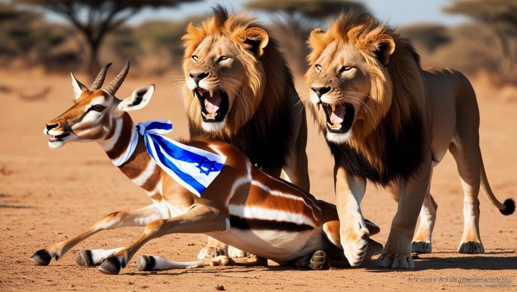 La imagen de los leones que arrastran la presa enfatiza la fuerza y la crueldad de la invasión, que no puede ser resistida ni detenida.